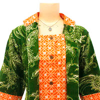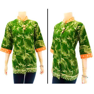 - Blouse Batik dengan model kerah syanghai, kancing bungkus di dada, lengan 3/4, tanpa sabuk dan tanpa kerut.