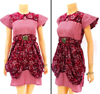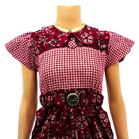 - Dress Batik dengan model kerah daun, lengan dobel, sabuk di pinggang (bisa di lepas), kerut di pinggang belakang, rempel di kedua pinggang.